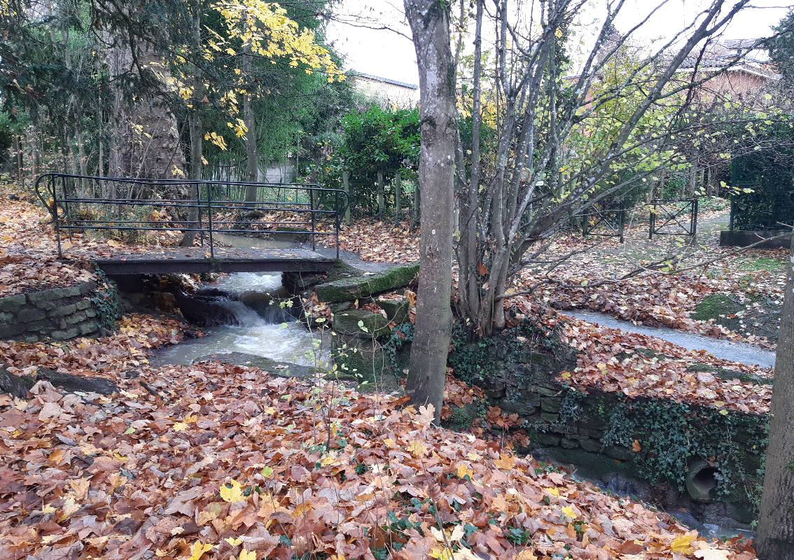 Il ne reste ainsi que 250 mètres de jolie promenade le long du ruisseau, là aussi engoncée dans les propriétés attenantes, depuis la rue Jules Révillon jusqu’à la rue Édith Piaf, 250 petits mètres après lesquels on voit la rivière s’enfoncer sous terre, enterrée sous la rue du Vallon pour refaire une apparition de 200 mètres, dans le parc de l’Abîme, avant d’être enterrée de nouveau jusqu’à la Saône.